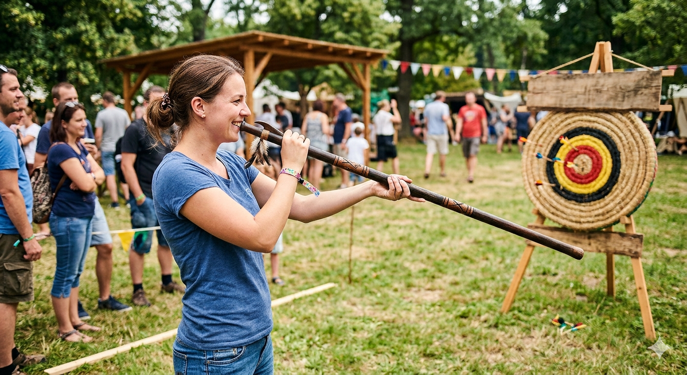 Zamiřte na terč a ukažte, kdo má nejpevnější nervy! Indiánská foukačka je ideální disciplínou pro uspořádání napínavého turnaje o titul nejlepšího střelce dne. Pod vedením našich instruktorů si každý rychle osvojí správnou techniku a poté už stačí jen přesná muška a silný dech, abyste ovládli výsledkovou listinu. Tato aktivita zaručeně probudí zdravou rivalitu a postará se o skvělou atmosféru na každé firemní i soukromé akci.